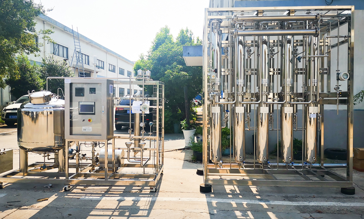 纯化水设备采用预处理+反渗透+EDI工艺,预处理、反渗透、EDI系统和分配系统采用耐高温巴氏灭菌工艺。