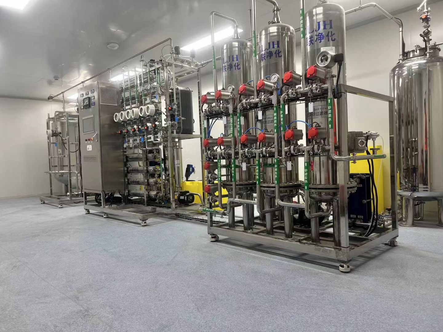 项目情况:20t/h纯化水设备、1t/h纯化水设备、500L/h注射水水设备+创联净化